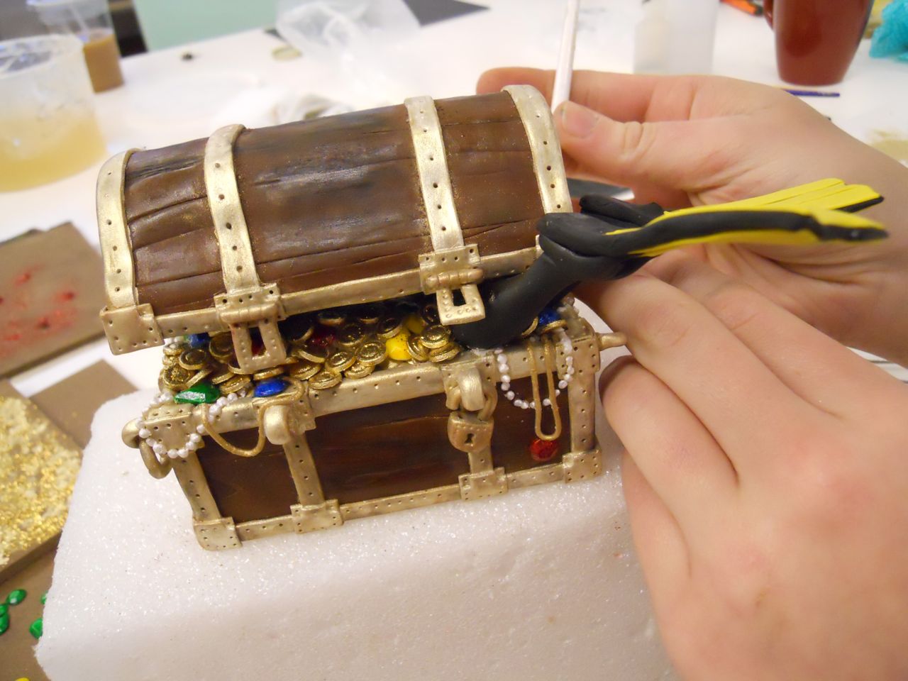 - Treasure chest for an “under the sea” themed bar mitzvah cake.