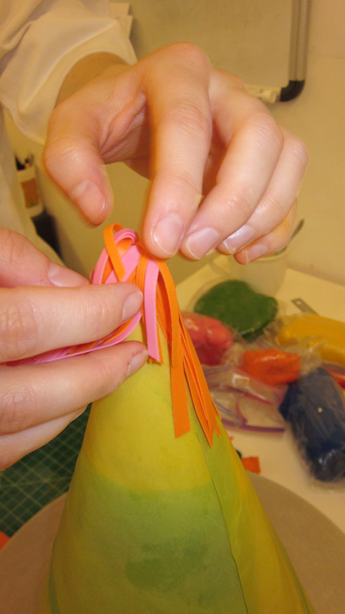 Last sugar touches of the party hat are being applied.