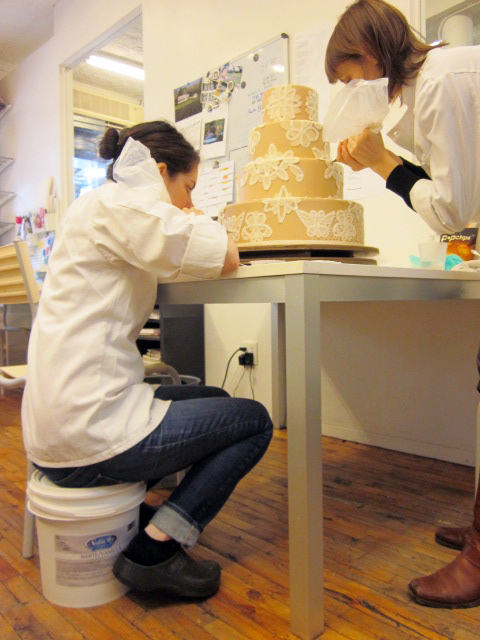 One of our employees, Julia, came up to me and asked, “Do you have a phone book I can sit on?”. She is a bit on the short side (like myself) and she is working on a cake that she needs to be sitting, but our chairs are too low and the stool is to high. I don’t have a phone book because I look up everything on my computer, should I give her that to sit on? 🙂