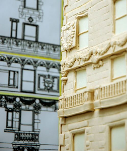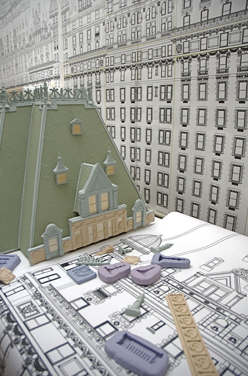 Once the molds were completed and the center structure was put together, the molding and application of details had begun. That part of the process was broken out into teams of people. At any given time the teams would be working on the façade, roof top and all of the small details you see on the outside of the hotel: planters, lights etc…