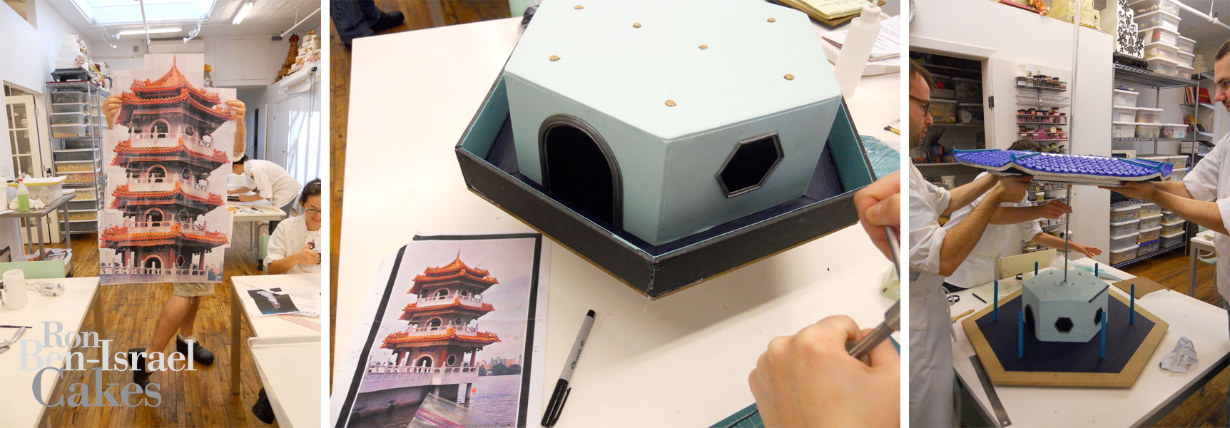 Every now and then we get a request for an unusual wedding cake.  Such was the case for a couple getting married at the Intercontinental in Boston, Massachusetts.  The couple had spent a lot of time in various parts of Asia, and the request for the wedding cake was a very large pagoda, with a pair of panda bears.  Of course we happily obliged…