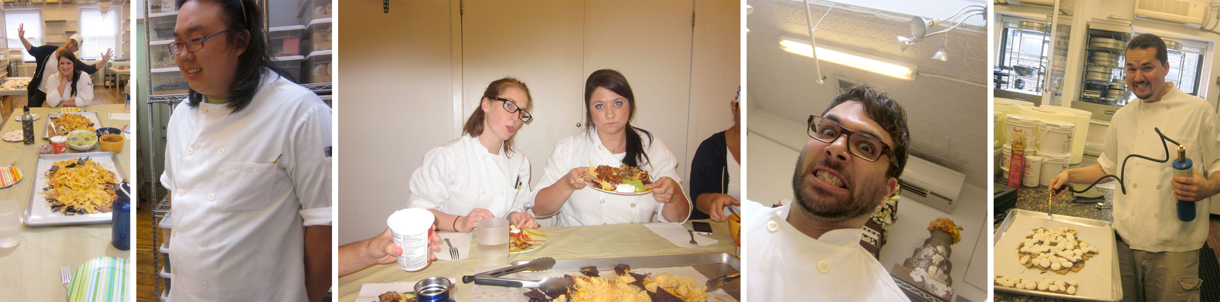 On your last day at RBI Cakes as an intern, you get to pick your pot-luck lunch.  Jessica’s choice was nachos.  (And of course having the sweet tooth’s we do, there were dessert nachos as well. Graham crackers drizzled with nutella and marshmallows.)