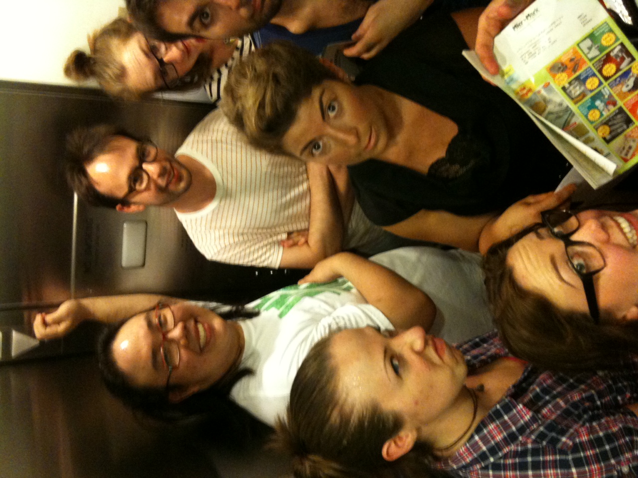 Today we took the afternoon off to go on a secret field trip. I can’t tell you where or what it was about, but it’s big and I can’t wait to tell you about it…but in the mean time, here is a picture of me and some of the staff stuck in the elevator at the bakery. This pretty much sums up our day…