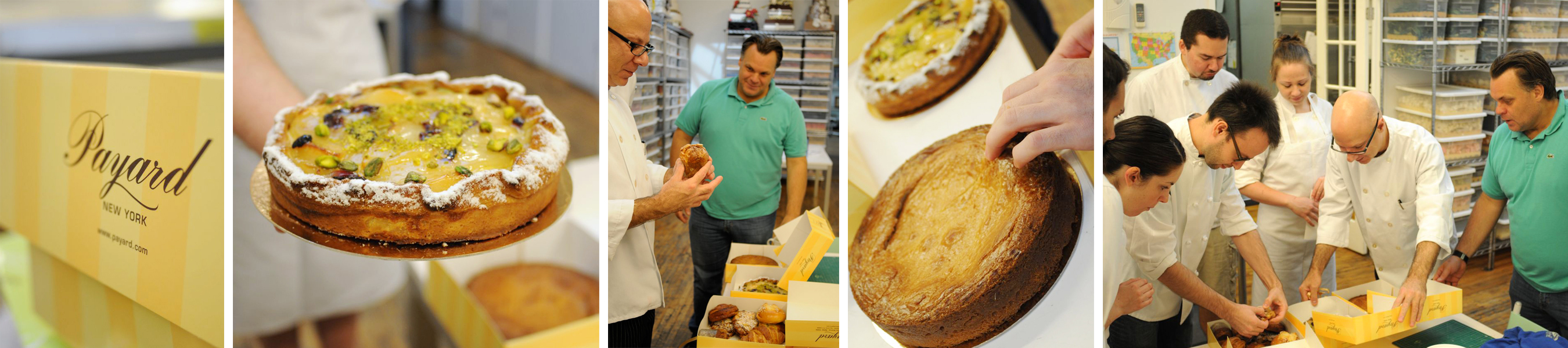 How do you get two busy pastry chefs together? You have to schedule it of course! One of Ron’s friends and colleagues, François Payard, popped in the bakery today for some advice on American style wedding cakes. The talented and well-known pastry chef is giving a lecture over in Europe and wanted to show his colleagues something “new”. So he stopped at the bakery for a chat with Ron. The two talked about different techniques they used in each of their respective kitchens and Chef Francois had lots of questions on Ron’s cake decorating techniques. He also demonstrated his piping skills on a worktable with piping gel. Something my staff will not soon forget and will probably be practicing for the next three weeks.