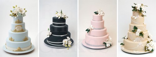 Never be afraid of suggesting to your clients adding a little color to their wedding cake. One way we like to do this in the bakery is throw a little spin on something “traditional”. Suggest to your clients that they cover the cake in a color (light, dark or in between) and the flowers on the cake are featured in white.
