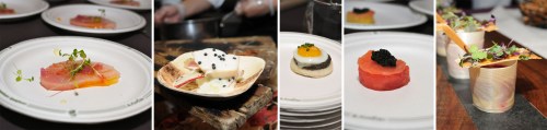 Some of the delicious dishes I tried (from left to right): Scarpetta: Yellowtail with Olio di Zenzero & flaked Sea Salt, Bar Basque: Black Cod Confit in Olive Oil with Cauliflower & Smoked Cavier, Great Performances: Mushroom & Truffle Pizza topped with Quail Egg, Caviarteria: Caviar & Smoked Salmon on Watermelon and Blue Hill: Forono Beets with Blue Hill Yogurt.