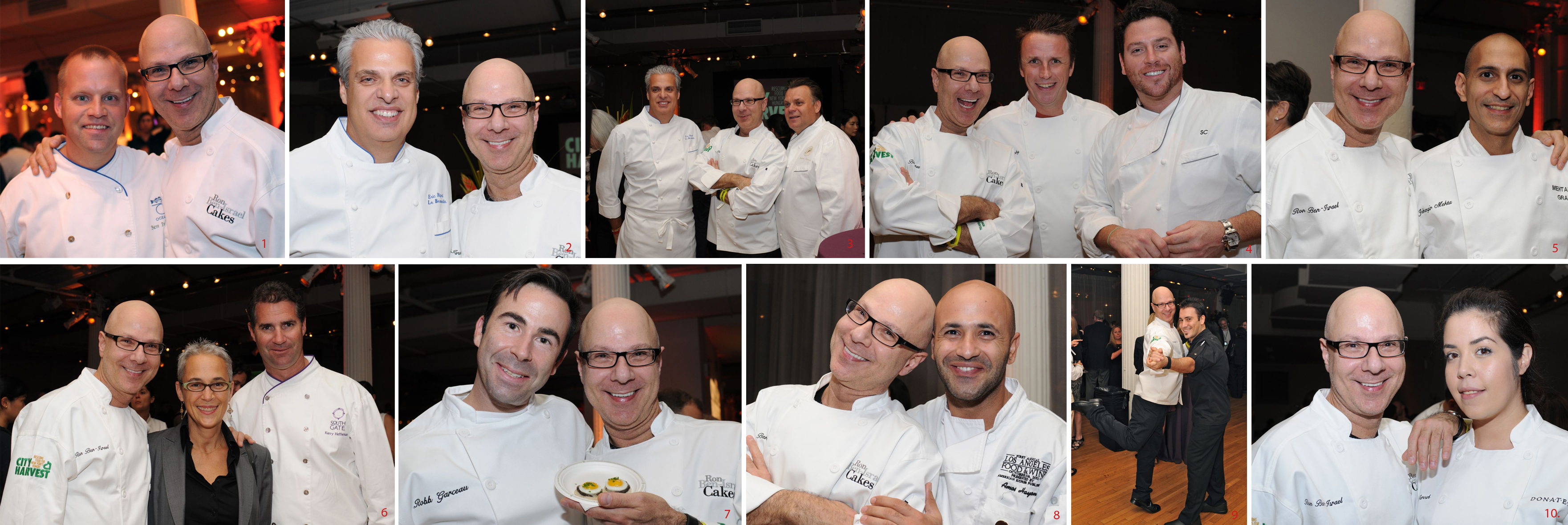 This event is always fun for the chefs. It's the one place where they can catch up with each other! (from left to right starting at the top) 1. Ben Pollinger from Oceana 2. Eric Rippert of Le Bernadin 3. Eric Ripert of Le Bernadin and Francois Payard of FPB 4. Marc Murphy of Landmarc and Scott Conant of Scarpetta 5. Jehangir Mehta of Mehtaphor 6. Liz Neumark of Great Performances and Kerry Heffernan of South Gate 7. Robb Garceau of Great Performances 8. One of Ron’s chef contestants and winner from Sweet Genius, Amos Hayon 9. Teaching Ron to Tango was Chef Gullermo of Sushi Samba 10. Andrea Jarosh of Donatella