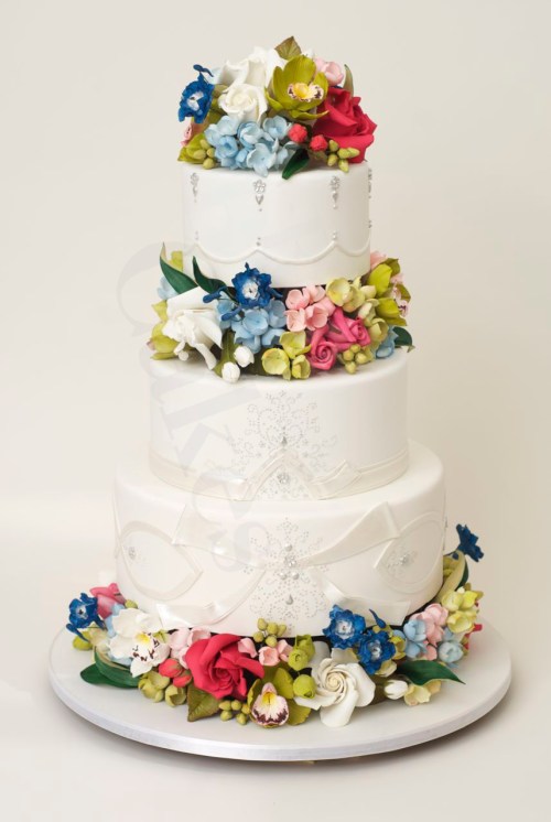 It’s a good question right?  My client today asked me about this. There are some bakers out there that use one or the other or both.  At RBI Cakes we choose to use fondant.  Our fondant tastes delicious, like sweet vanilla or if you are a bit more daring for a color choice choose the chocolate that tastes like a Tootsie Roll.  (Before the application of the fondant, the cakes are frosted with a Swiss meringue buttercream.)  In order for us to achieve the kind of cakes that we do, with the intricate design work, we use fondant to give us a smooth perfect canvas.  We roll ours out to 1/16thof inch.