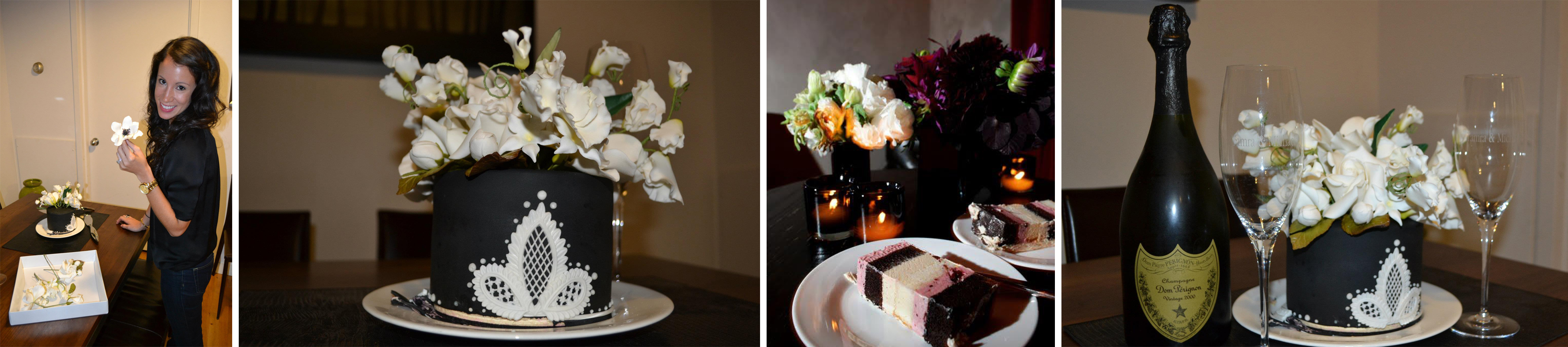 1. Once the cake gets home put the top tier back in the fridge, sugar flowers and all. Let the butter cream get firm in the fridge. Leave it for at least 3 hours or overnight is best.