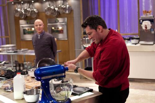 Ron on set observing Chef Franck Iglesias, Executive Pastry Chef at Foxwoods Resort & Casino in Connecticut.