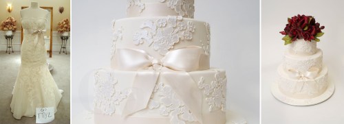 Ron has developed a lot of techniques in his short time being a baker and cake decorator. (Some of them we share with you, some of them we never will, sorry folks – we have to keep the mystery!)  One of the things he gets a lot of compliments on is when he uses confectionary lace as a design element on cake surfaces.  We get many phone calls and emails asking where we get the lace molds.  Well, Ron makes them.  He makes them out of silicone.  Ron taught himself how to master this craft.  It’s fun to watch him makes things out of silicone too, it’s like science class.  This is just one more way that Ron has taken “customizing” to the next level.  What can be more fun than seeing the lace from your wedding dress crafted into sugar and applied to your wedding cake.