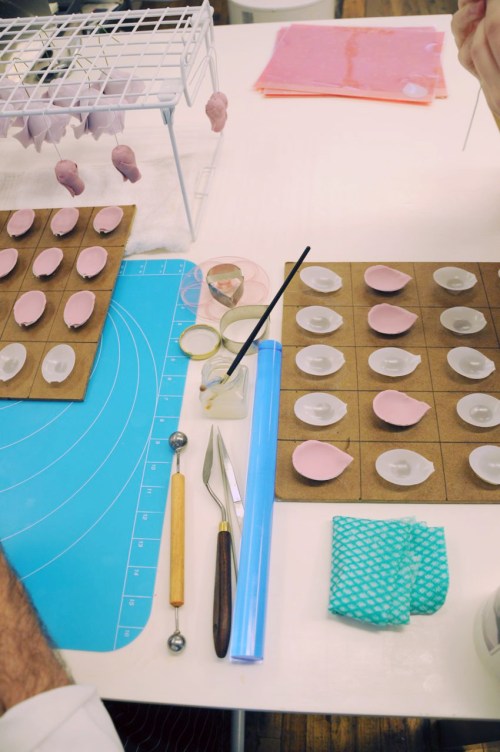 Ron is teaching Sarah how to make sugar roses. His process is always very hands on so he can maintain the consistency in his flowers.