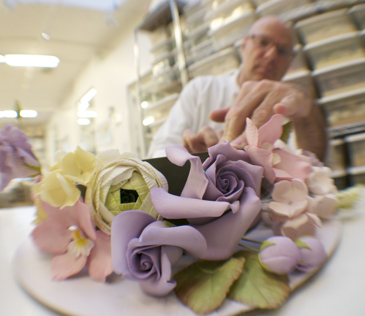 So Ron has been a busy guy filming his show in a film studio some place in Manhattan. His production company actually gave him the day off and he came to visit us at the bakery, do a little paperwork, make some roses and put together a separator for a cake. Always keeping him on his toes! He has the rest of this week filming and then will be back with us in the bakery. I will let you all know when we get the new airdate for Sweet Genius.