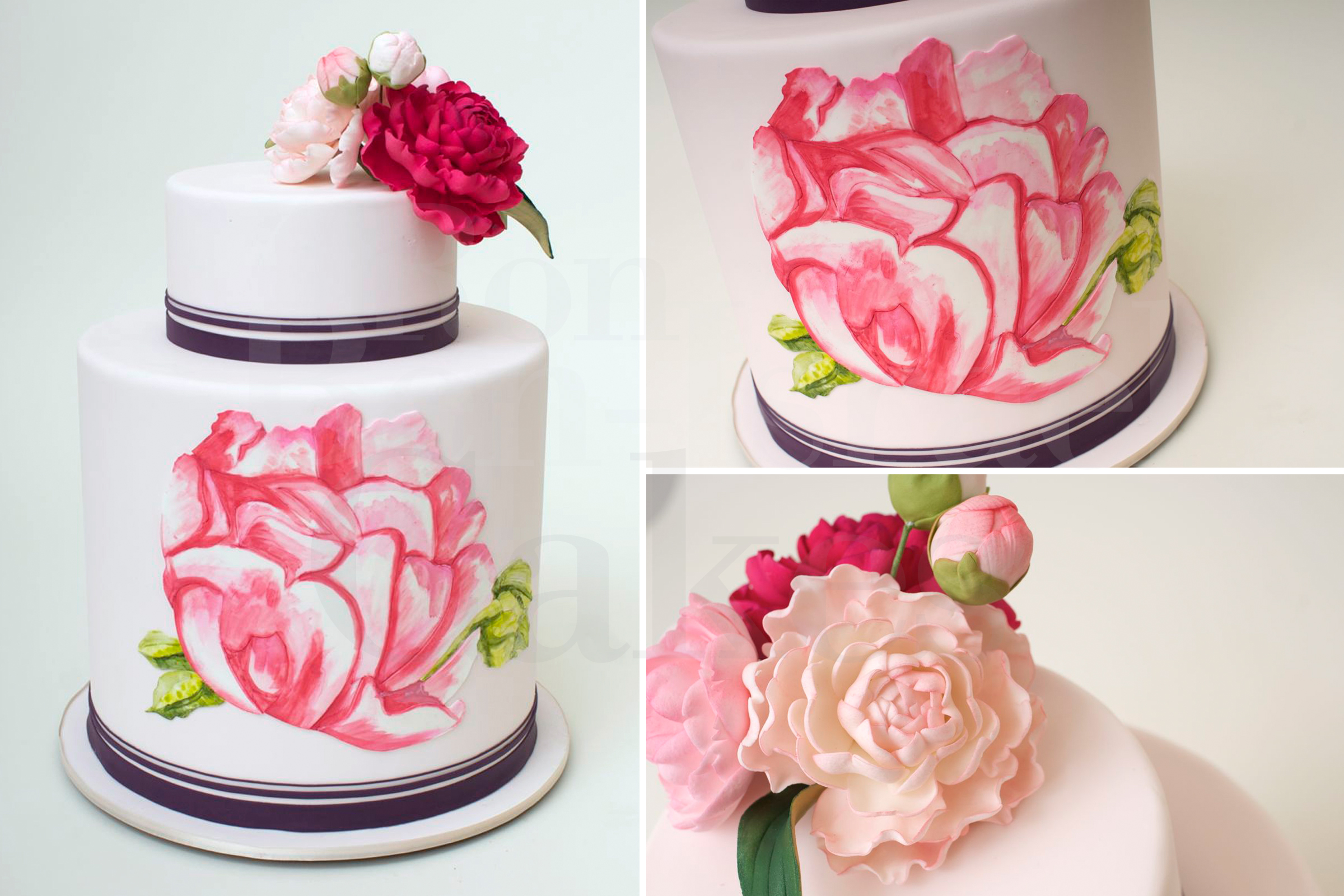 One of my favorite times of the year, spring. Beautiful flowers are abundant and one of my favorites is the peony. Here is a wedding cake we did for Patricia and Doug, their invitation was inspired from a painting Patricia’s best friend made for her of peonies and they had it scanned and was used as part of their invitation.