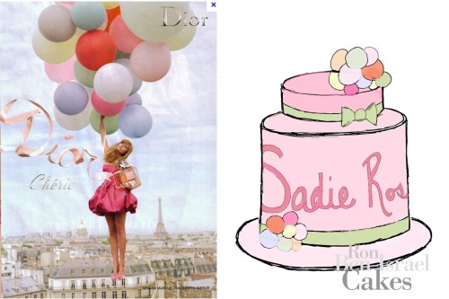 We love that our clients come back to us after that get married for other celebration cakes.  We did Ali & Jordan’s wedding cake in January 2009.  They came back for a cake for the newest addition to their family, little Sadie Rose.  Ali sent us a picture to be inspired by, I sketched a little something out for her because she could not make it in, and then went forward making the cake.  I have to say…it’s pretty sweet.