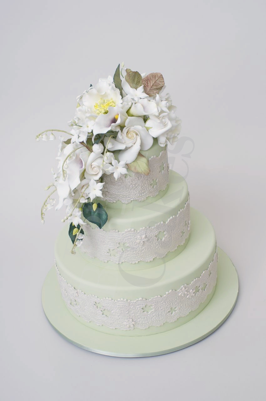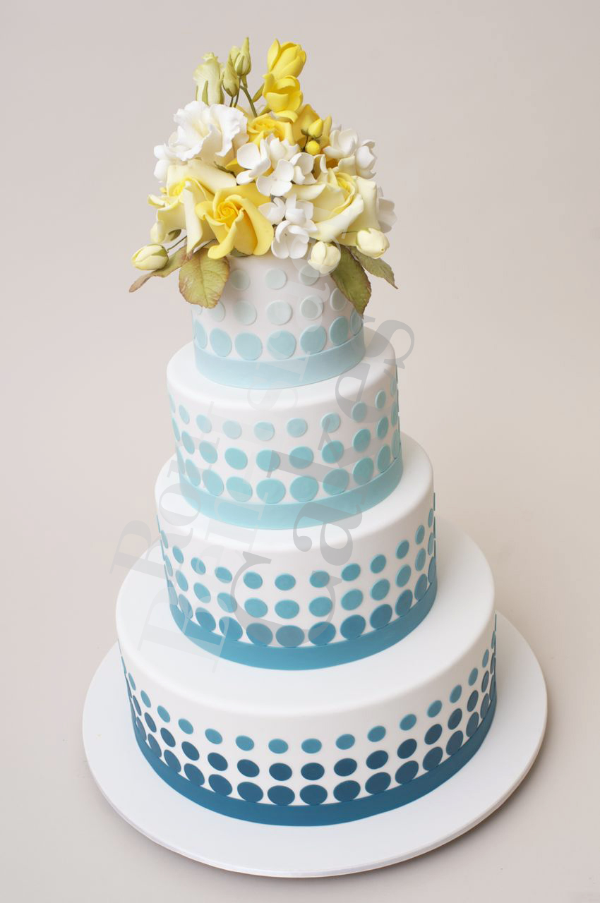 Appointments have been kind of exciting lately. Like with fashion color is coming back into the wedding cake. Our clients are making wonderful, bold choices for the décor of their wedding cakes this season. If you do decide to go with this bold choice, keep it relevant. You don’t want to make the cake the color of a Smurf, nobody wants a picture of you chewing on that. The additional sugar décor should compliment and enhance the color choice.