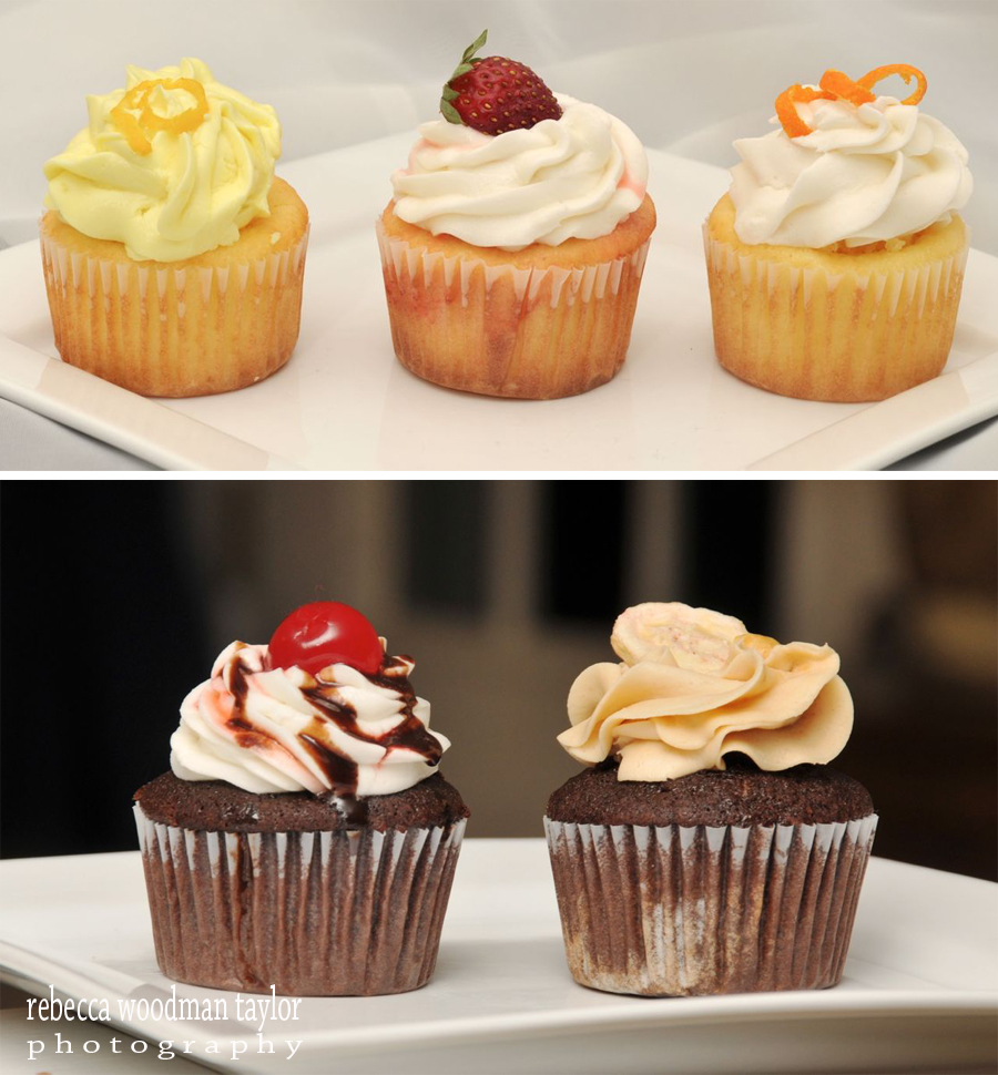 Vanilla Cupcake with Lemon Curd Filling and Lemon Icing, Strawberry Cupcake with Strawberry Mouse and Cream Cheese Icing, Vanilla Cupcake with Orange Mouse Filling and Vanilla Icing, Chocolate Cupcake Cherry Filling and Cream Cheese Icing. Last but not least Chocolate Cupcake with Banana Filling and Peanut Butter Icing.