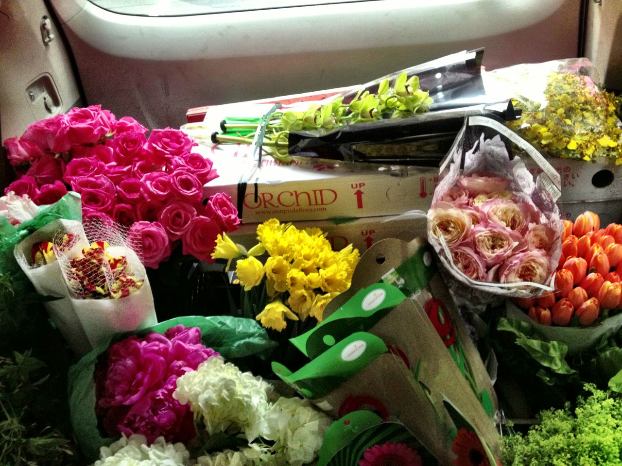 All of the flowers that we brought over to the Today Show studio. Needless to say our van smelled amazing! Like spring!