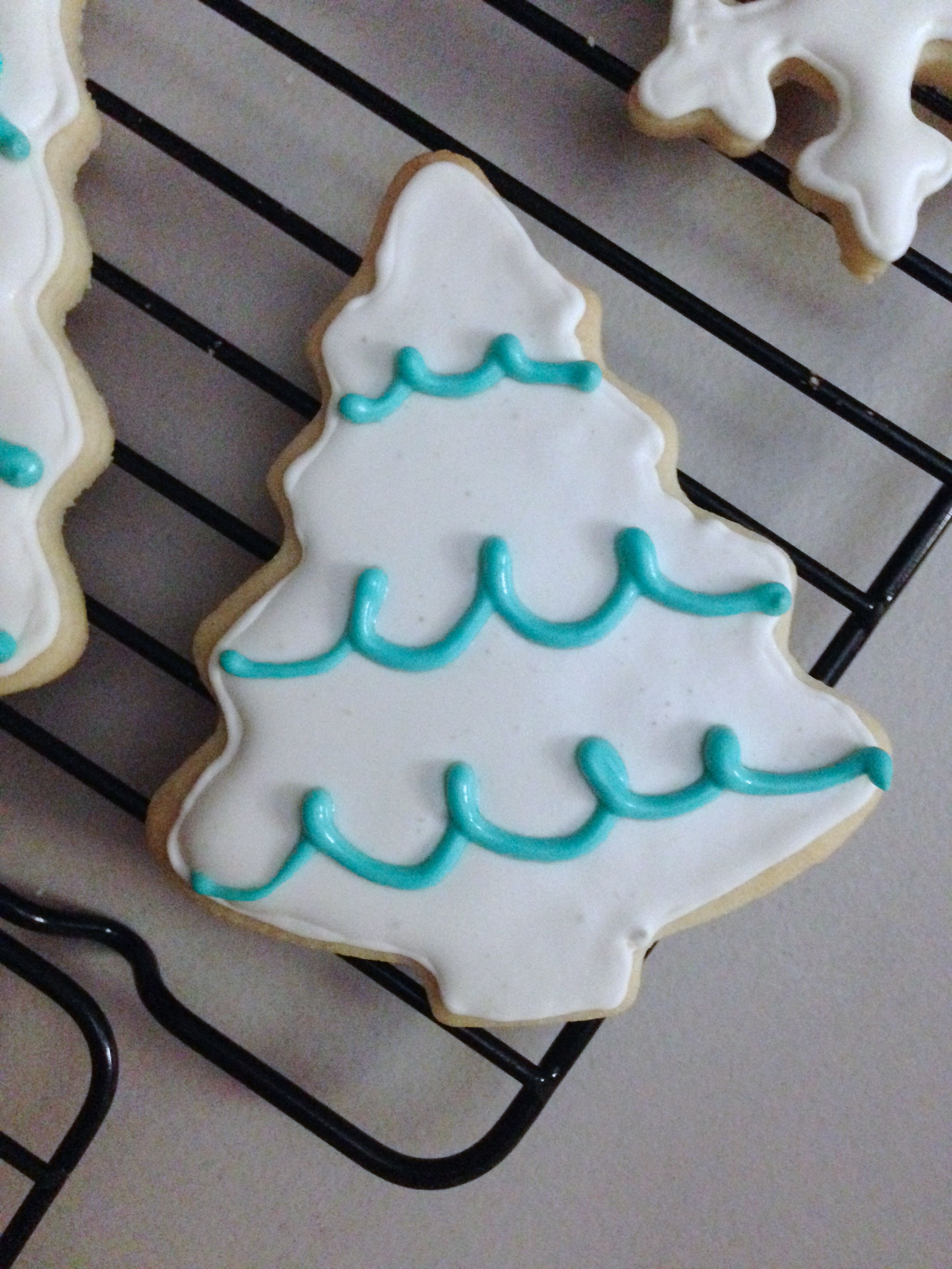 This year I decided on Christmas trees and reindeers. I read many different blogs about recipes for royal icing and flooding techniques. I took all of the info I found and picked the bits I could work with and did my thing.