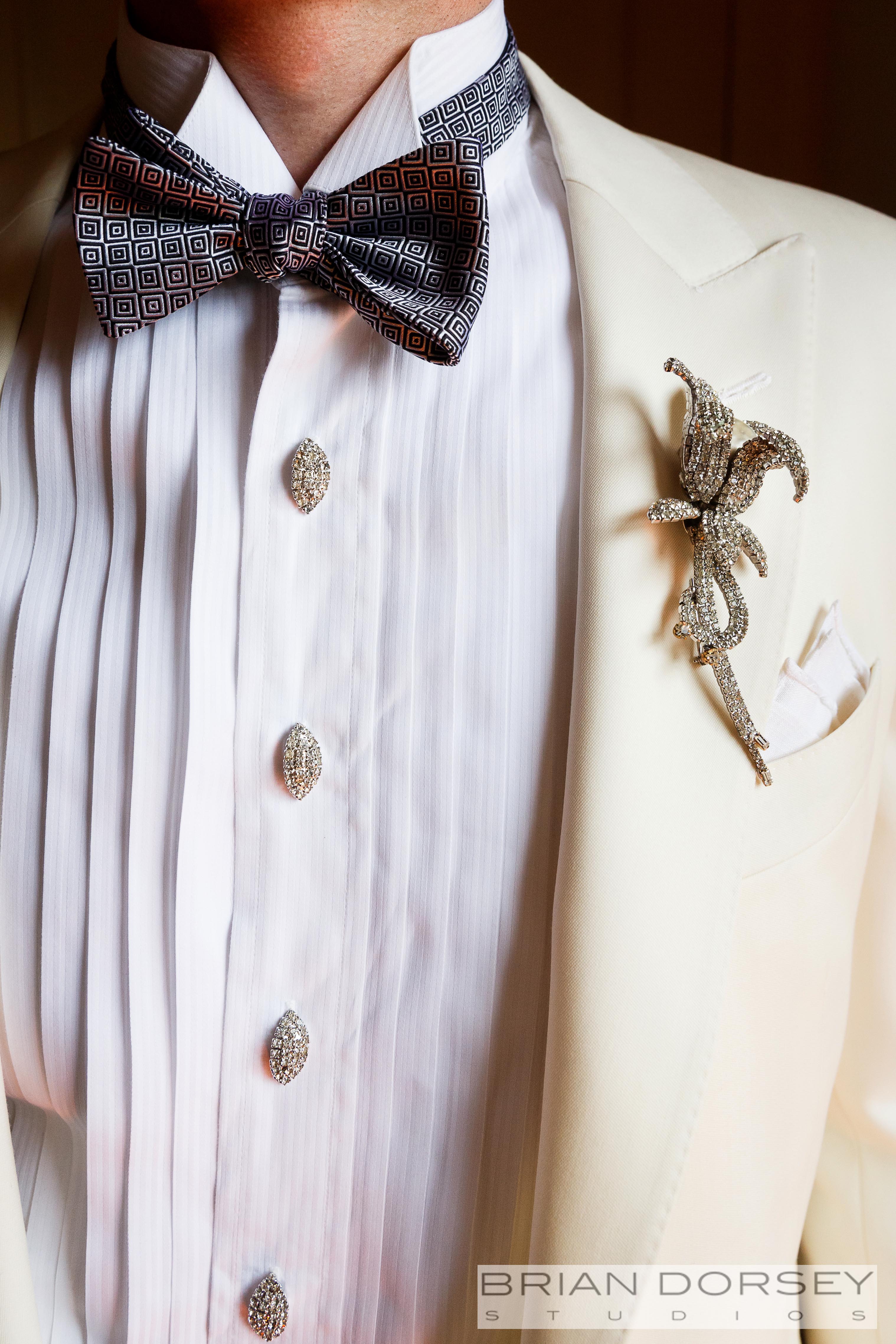 In keeping with the theme of incorporating my company’s vintage jewelry parts into my wedding, Floralia Decorators went above and beyond what any luxury flower and event decorators would be expected to do. Getting dirty, they came to my 5,000 square foot warehouse three or four times, digging for antique treasures they could use for my wedding. Floralia picked out vintage rhinestone broaches, which were attached to ribbon and used as decorative napkin rings for the place settings and doubled as a gift for the guests to take home. They also picked vintage rhinestone necklaces and belts that were draped on the back of guests chairs as decorations as opulent as the roaring twenties. Next, Floralia picked out boxes of antique hand blown French crystal chandelier parts (also from CJS) to decorate the flowers and candelabras. It was spectacular. Additionally, Lion head cuff links designed by my father in the 1960’s under his previous company Kim Craftsmen (1950’s to 1990’s, which produced over 100 million pieces of jewelry in the garment center and has been featured in museums and jewelry books) were also incorporated into the table settings as decoration and gifts for the gentlemen guests to take home as party favors. The table looked beautiful and guests are still talking about the precious treasures they got to take home. A lion Judith Leiber purse frame was dug up at CJS and chosen to be the ring box.