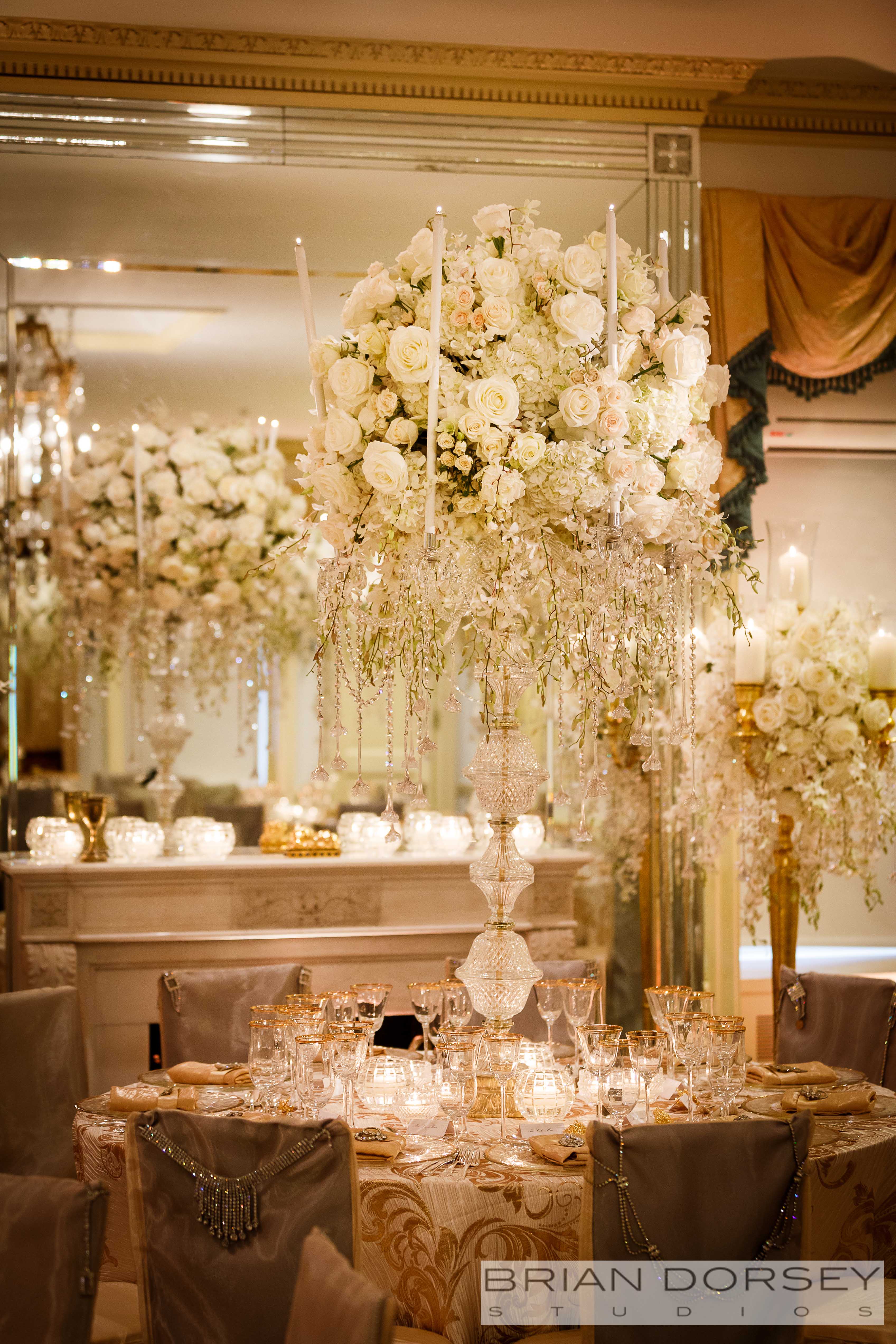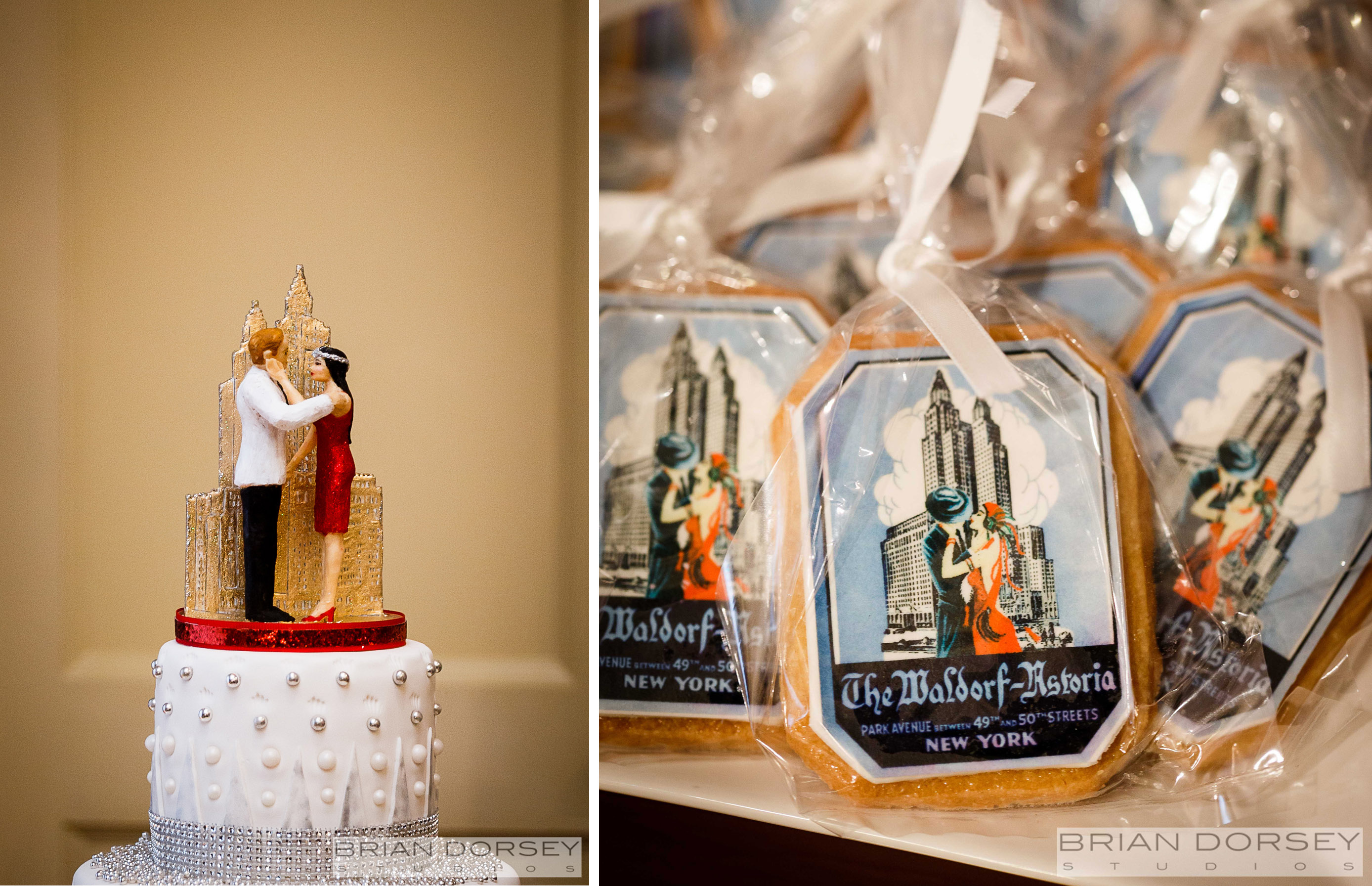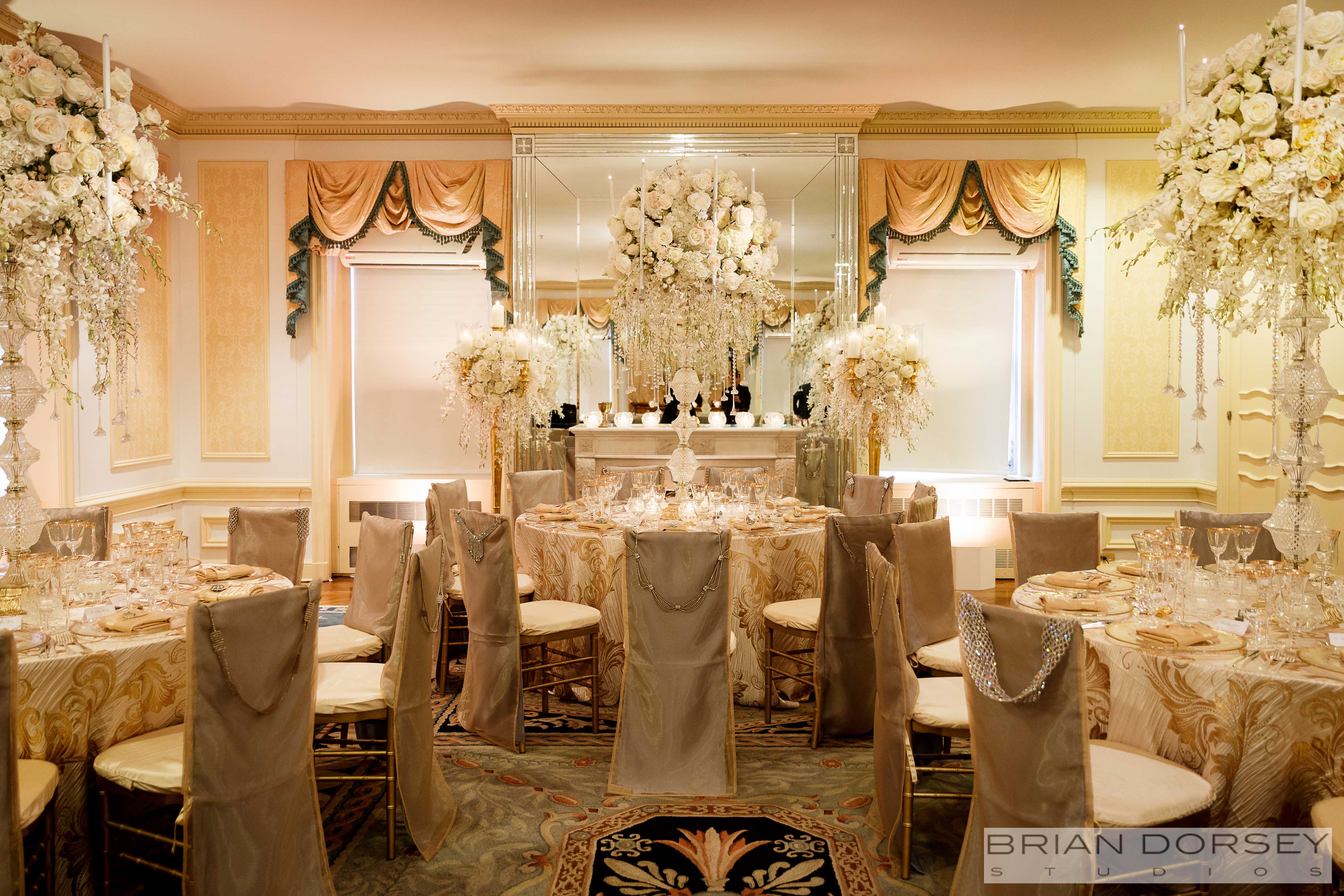 Last September, I had the pleasure of working on a beautiful, unique wedding at the Waldorf Astoria Hotel in New York City. What was so unique about this wedding? The décor…it was just the right amount of sparkle. But it’s where the sparkle came from that made it special. Our bride Elyse owns a business with her father called CJS Sales in Manhattan. They sell vintage jewelry parts and supplies, among fabulous other treasures and incorporated exquisite pieces from their own warehouse with the help of some of Elyse’s designer friends made this Art Deco wedding a visual wonder.