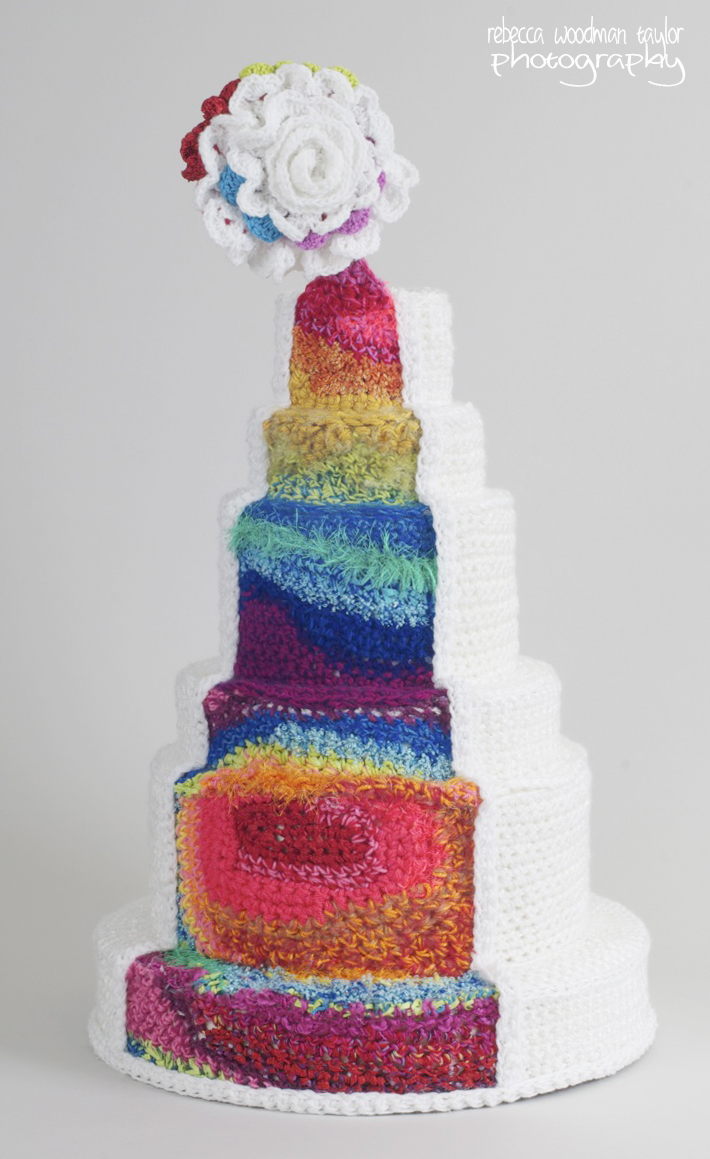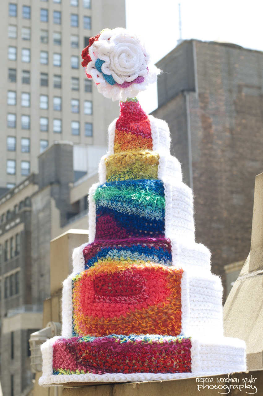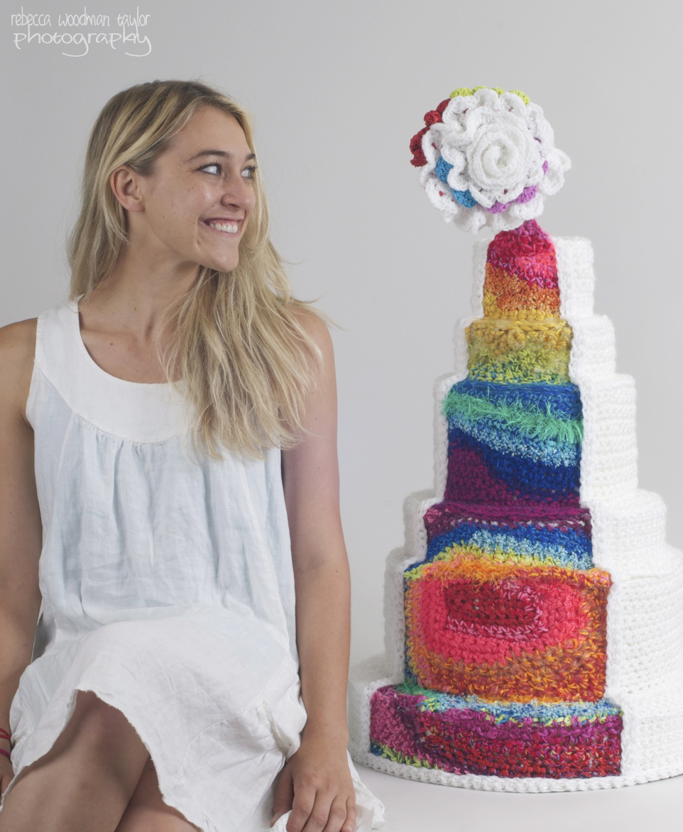 I asked London what the favorite part of this project was for her, and it was the challenge of crocheting something round. To test her skills even further she actually crocheted the color portion of the cake blind folded. She loves using vibrant colors in various textures of yarn. Both artists appreciate color and texture in each of their mediums, which why this was a no-brainer for a partnership.